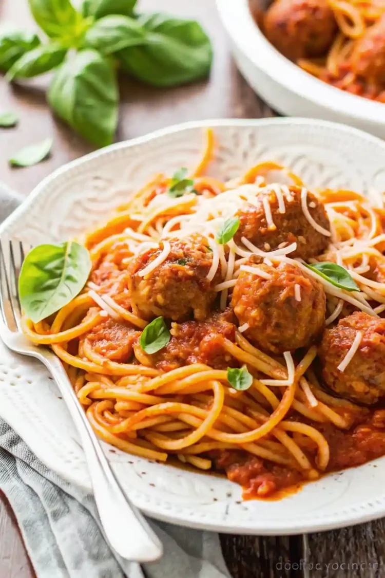 Instant Pot recipe for spaghetti and meatballs! This one-pot, 30-minute meal cooks the pasta, sauce, and juicy meatballs all together for the perfect weeknight dinner.