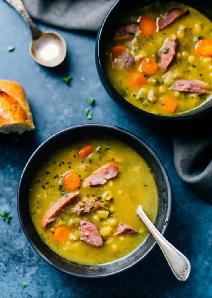 - Pro Tip: There’s no need to soak the split peas overnight for this recipe. A simple rinse is all that’s required before they go into the pot.