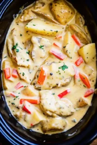 This Creamy Crock Pot Ranch Chicken is the ultimate “dump-and-go” dinner, delivering an incredibly savory, tangy, and satisfying meal with just a handful of ingredients and minimal effort. This recipe features tender, fall-apart shredded chicken, slow-cooked to perfection in a rich, velvety sauce made from cream cheese and zesty ranch seasoning. It’s a versatile, low-carb, and family-pleasing meal that will quickly become a staple in your dinner rotation.