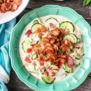 For that perfect crunch: salt your cucumbers first and let them sit for 10 minutes. Then pat them dry. Don’t skip the chill! Pop your Creamy Cucumber Salad with Bacon and Cheese in the fridge for at least thirty minutes. The flavors… wow. Bacon: crispy, not chewy, is the only way. I bake mine on parchment for easy cleanup (learned this from my grandma). Think about add-ins. Feel free to toss in scallions or a handful of fresh dill if you’ve got ‘em. I once tried blue cheese—YUM. If you want to go lighter, try Greek yogurt instead of mayo. And hey, no judgment if you eat it straight from the bowl. That’s my standard method.