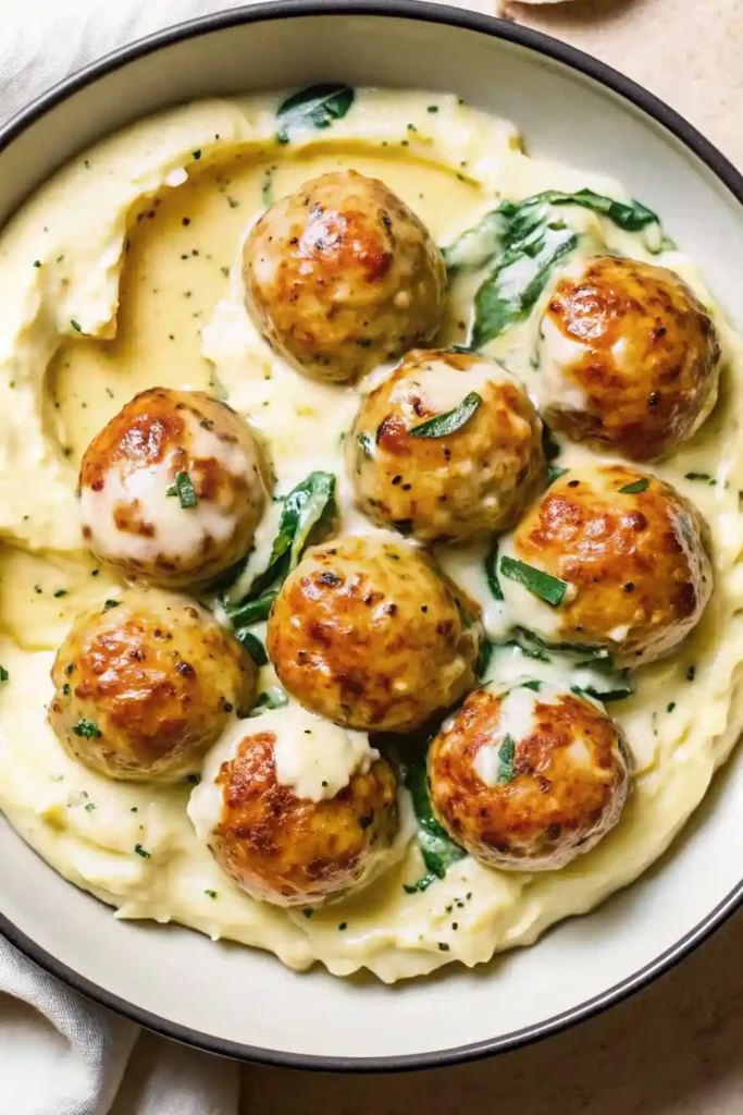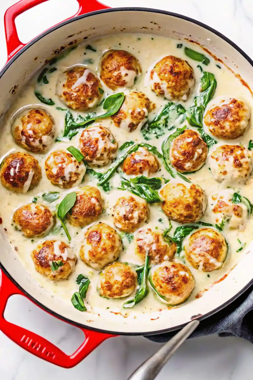 This recipe for Creamy Garlic Parmesan Chicken Meatballs is the ultimate one-pan comfort food, packed with rich, savory, and cheesy flavors. This dish features juicy, tender chicken meatballs, pan-seared until golden, then simmered in a luscious, velvety garlic-parmesan cream sauce. It’s a rustic, satisfying, and incredibly easy meal that’s guaranteed to be a hit with the whole family.