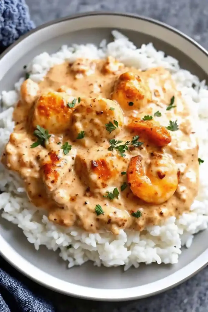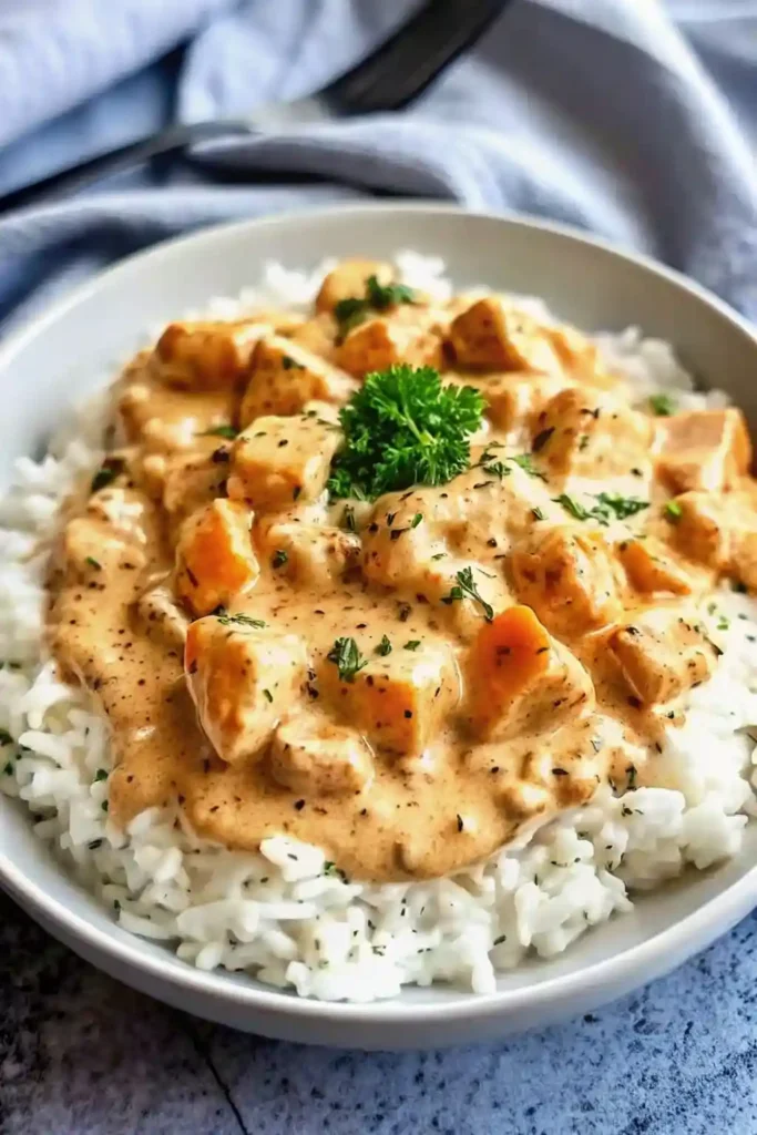 - Serve chicken and sauce over fluffy rice. Garnish with fresh parsley if desired.