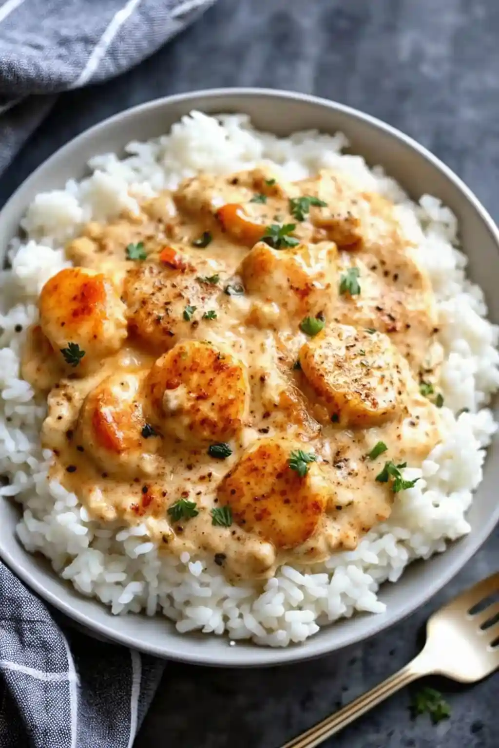 Perfect for a busy weeknight, this recipe transforms simple ingredients into a show-stopping meal. The rice absorbs all the delicious flavors from the chicken and the creamy sauce as it cooks, resulting in a dish that’s packed with flavor in every single bite.