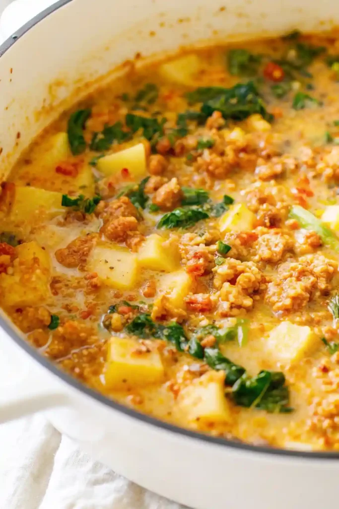 This Creamy Vegan Zuppa Toscana is a rich, hearty, and incredibly satisfying soup that proves you don’t need dairy or meat to create a truly comforting classic. It features spicy plant-based sausage, tender potatoes, and nutrient-rich kale, all swimming in a velvety, savory broth made creamy with full-fat coconut milk. It has all the beloved flavors of the Olive Garden favorite, made completely vegan.