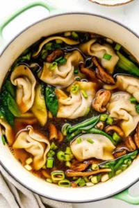This Easy 20-Minute Potsticker Soup is the ultimate weeknight dinner hack, delivering all the comforting flavors of your favorite dumplings in a warm, savory broth. This one-pot wonder uses frozen potstickers as a brilliant shortcut, simmering them in a rich, aromatic broth infused with ginger, garlic, and soy sauce. Paired with tender mushrooms and crisp bok choy, it’s a complete, satisfying meal that tastes like it took hours to make.