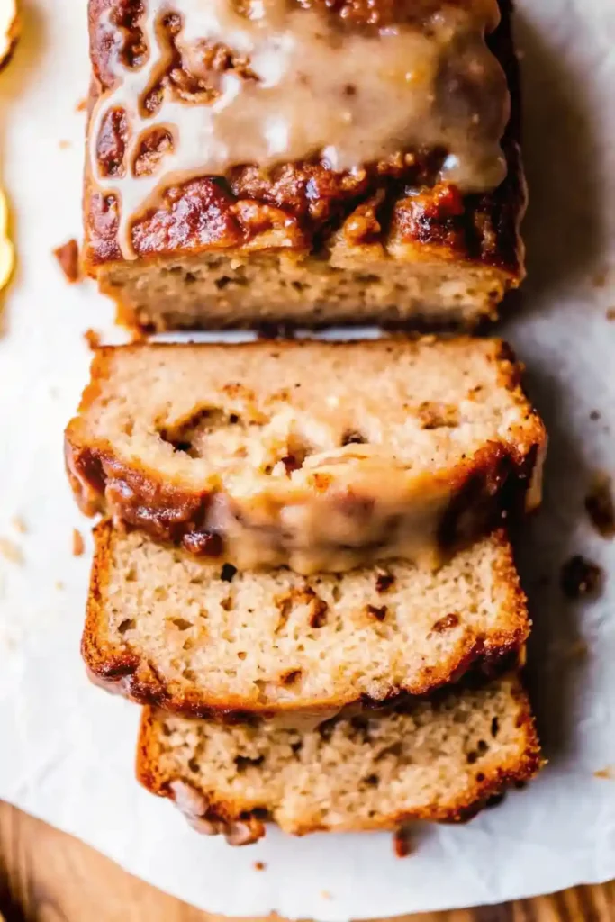 - Glaze and Serve: Once the bread is cool, whisk together the powdered sugar, 2 tablespoons of milk, and vanilla extract until smooth. Add more milk if needed to reach a drizzling consistency. Pour the glaze over the top of the loaf. Let the glaze set before slicing and serving.