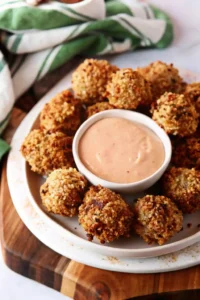- Serve warm boudin balls with the dipping sauce. Garnish with sliced scallions or parsley if desired.