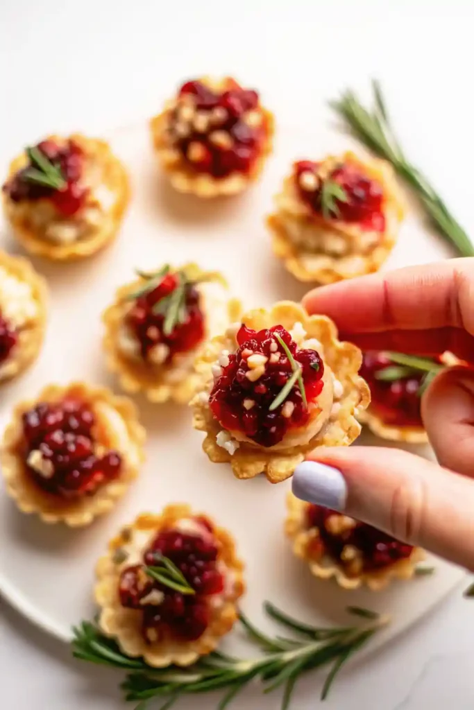 - Serve these cranberry brie bites warm on a platter as a sophisticated appetizer for any holiday party or gathering. A garnish of fresh rosemary adds a beautiful pop of color and a lovely, festive aroma.