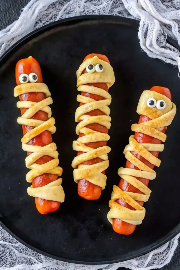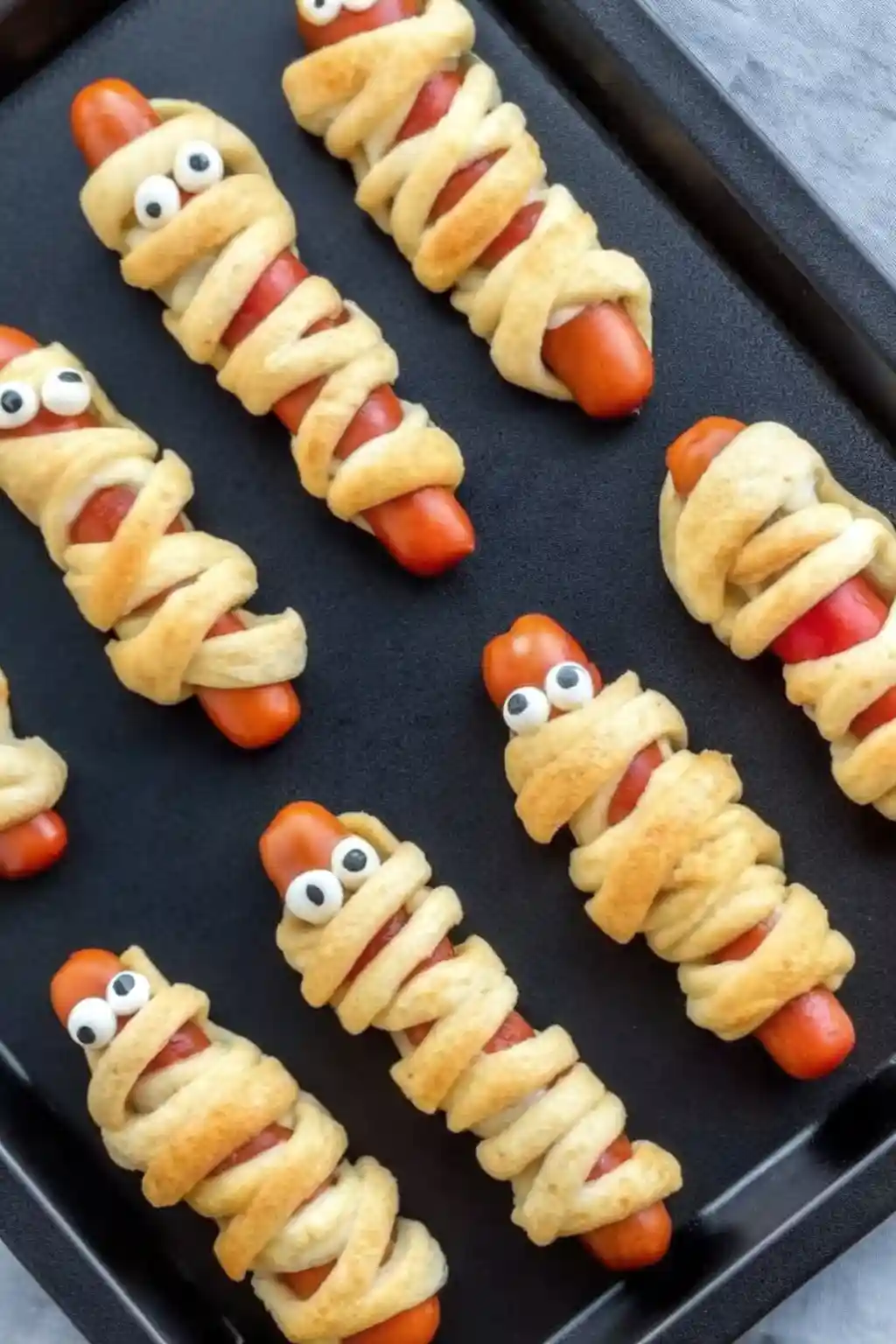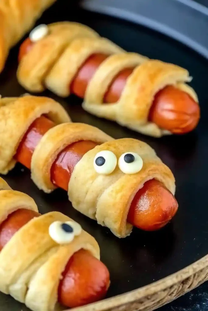 - Mini Mummies: Use cocktail wieners or cut regular hot dogs in half for cute, bite-sized mummy appetizers.