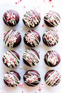 - Coat and Serve: Roll each truffle in your desired coating (cocoa powder, crushed peppermints, or sprinkles) until evenly covered. Store in the refrigerator until ready to serve.