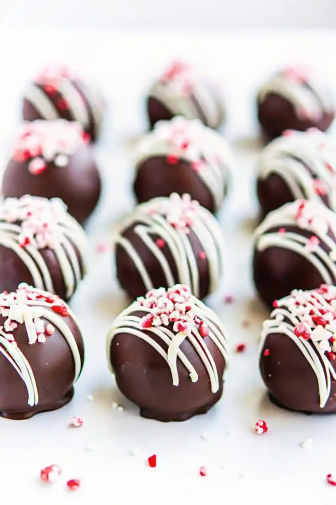 - Coat and Serve: Roll each truffle in your desired coating (cocoa powder, crushed peppermints, or sprinkles) until evenly covered. Store in the refrigerator until ready to serve.
