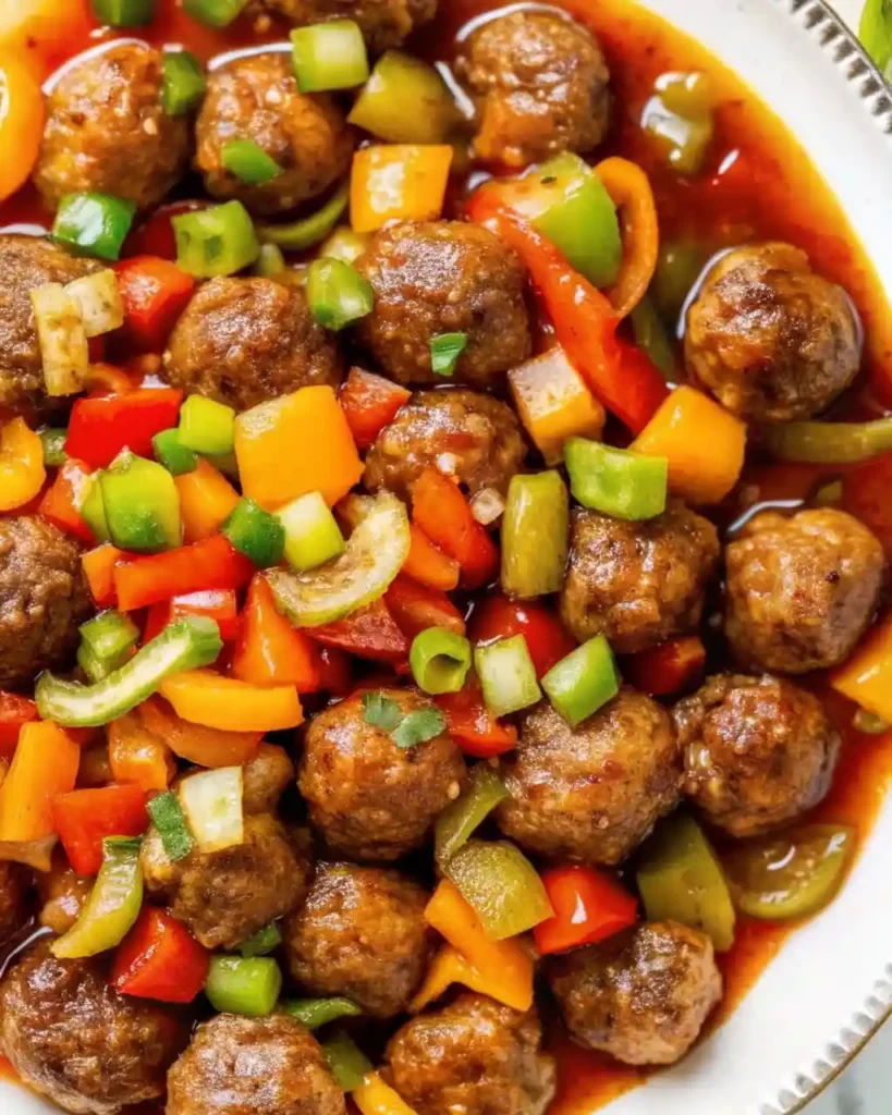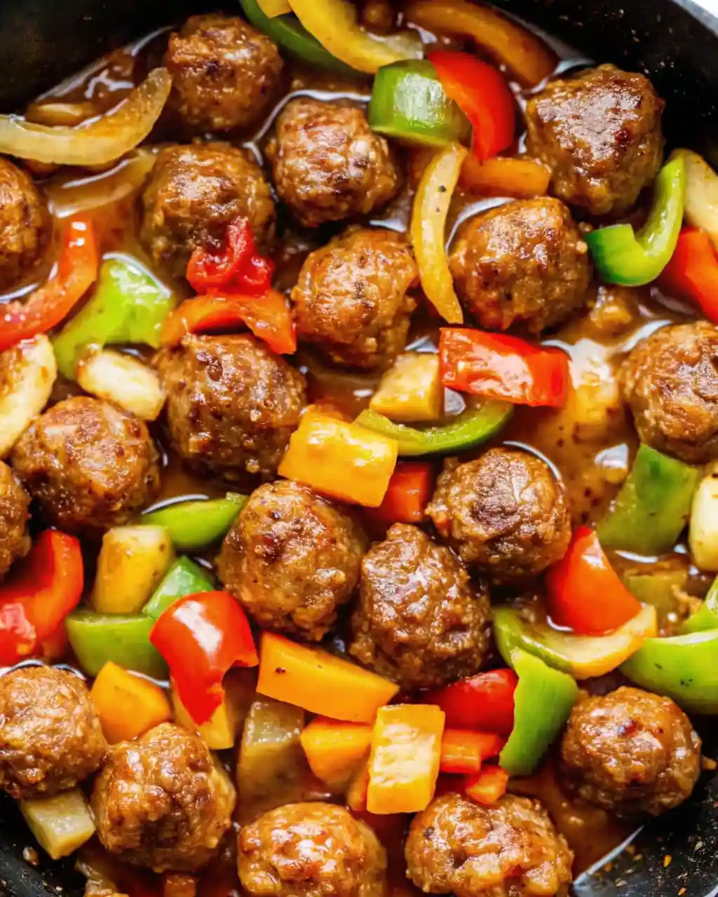 These Easy Sweet And Sour Meatballs are a classic takeout favorite made right in your own kitchen, and they’re better than you can imagine. Tender, juicy meatballs are baked to perfection and then tossed in a vibrant, glossy sweet and sour sauce loaded with chunks of sweet pineapple, crisp bell peppers, and onion. It’s a 30-minute meal that’s bursting with the perfect balance of sweet and tangy flavors.