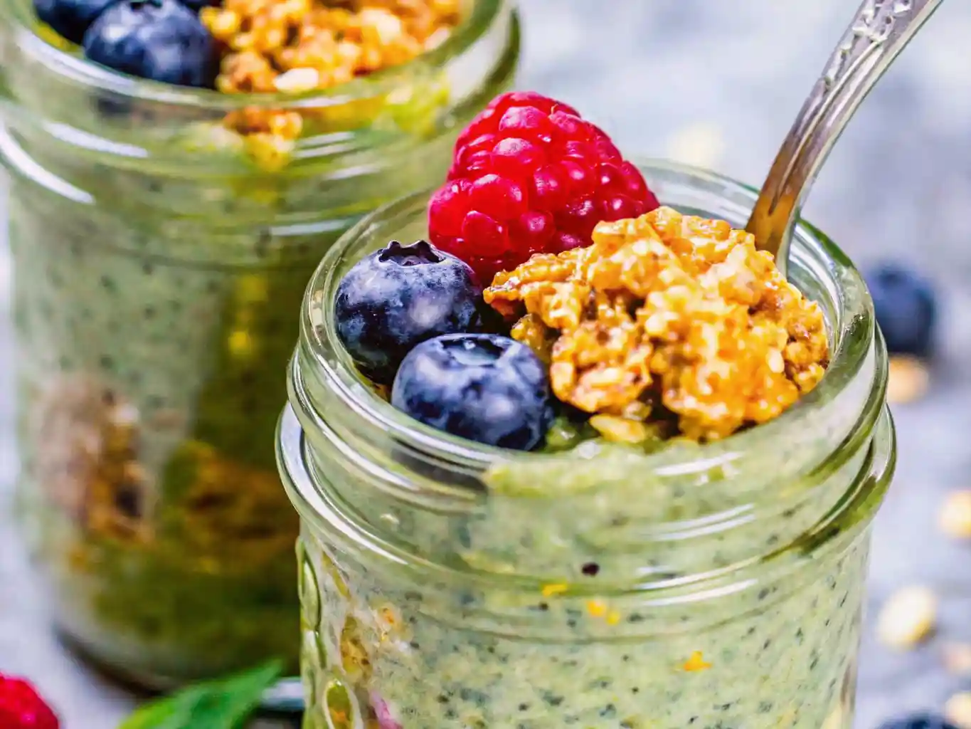 - Enjoy this breakfast chilled, straight from the fridge. The earthy notes of matcha pair beautifully with the tartness of fresh raspberries, the sweetness of blueberries, or the crunch of toasted almonds and coconut flakes.