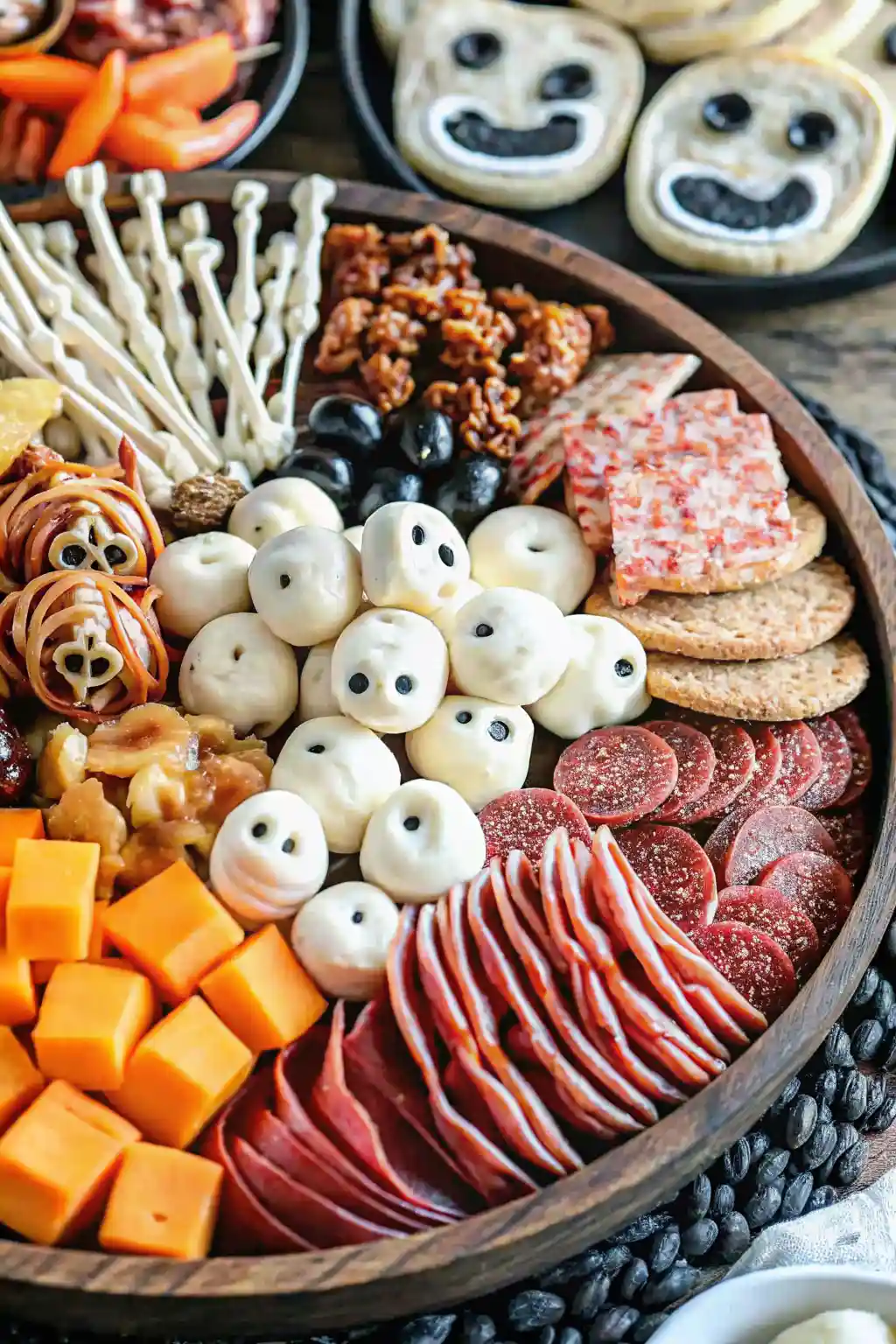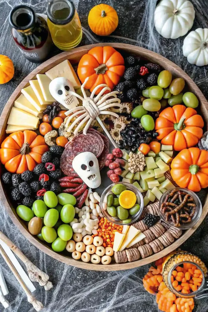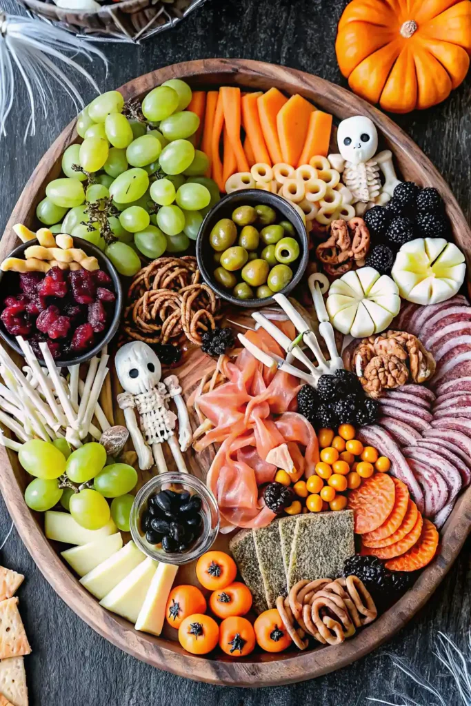- Gothic Graveyard: Use a dark slate board and focus on dark-colored foods like black grapes, blackberries, dark crackers, and moody cheeses.