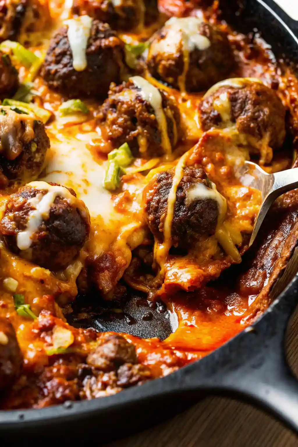 - Combine: Return the seared meatballs to the skillet, nestling them into the sauce. Reduce the heat to low, cover, and let the meatballs simmer for 15-20 minutes, or until they are cooked through.
