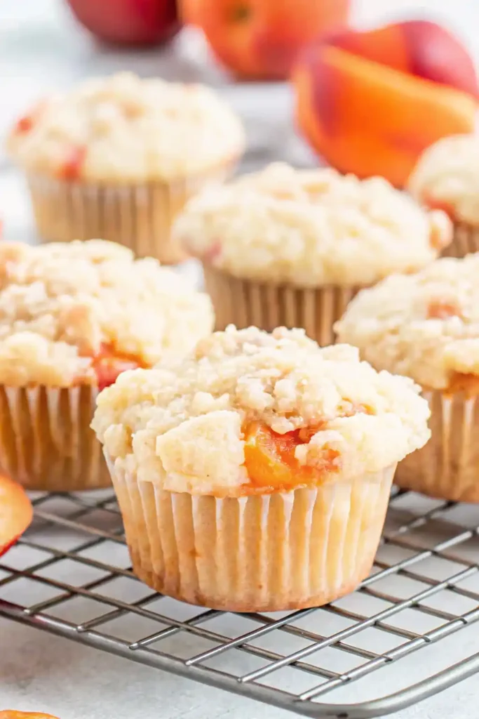 - Dry the Fruit: If using exceptionally juicy peaches, pat them dry with a paper towel after macerating. Excess water is the enemy of a tall, domed muffin.