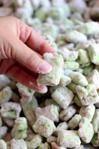 - The “Mason Jar” Look: Layer the pistachio muddy buddies with whole white chocolate truffles in a clean glass jar.