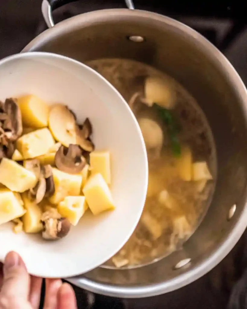3. Add potatoes, broth, white wine (if using), and fresh herbs. Bring to a simmer, cover, and cook 15-20 minutes until potatoes are tender.