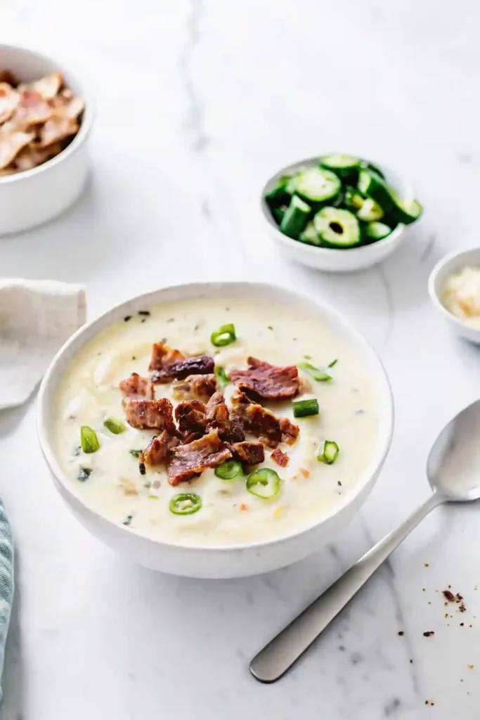 - For Garnish: Extra crumbled bacon, sliced jalapeños, shredded cheddar, fresh cilantro