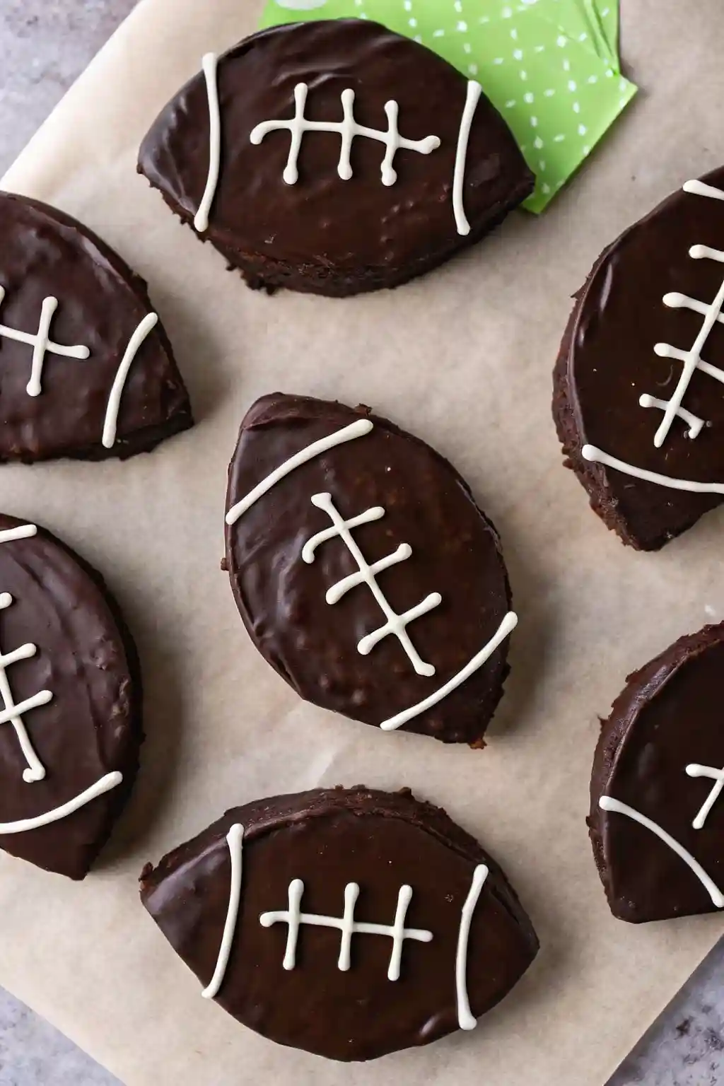 Grease and line your pan, so no one’s stuck chiseling crust from metal. For sharp football shapes, cool brownies in the fridge first—it firms them up, which makes cutting less of a gooey mess.